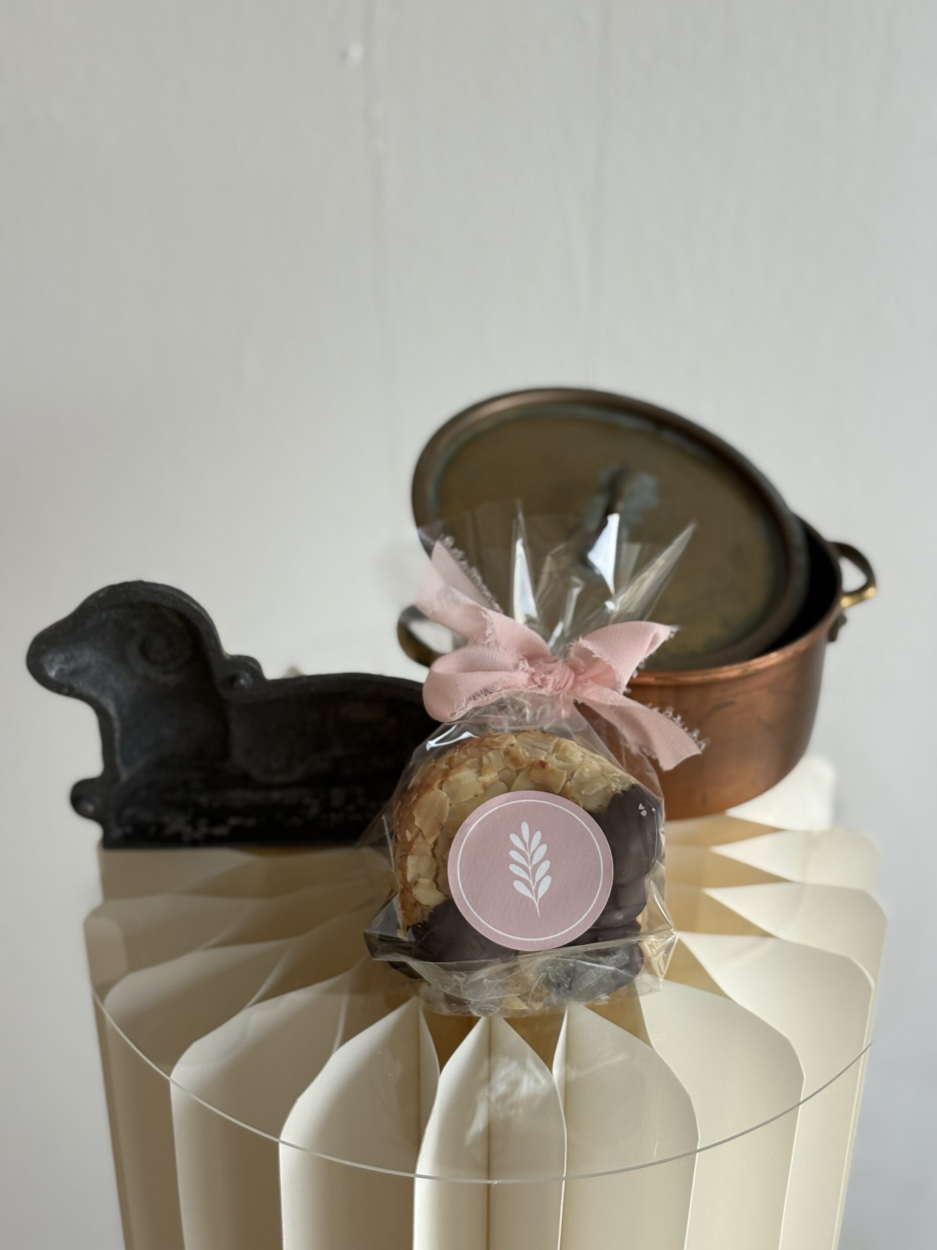 3 Stück ,Zutaten: Marzipanrohmasse, Eiweiß, Zucker,Mandeln gehobelt , Zartbitterkuvertüre (Sojalecithin)